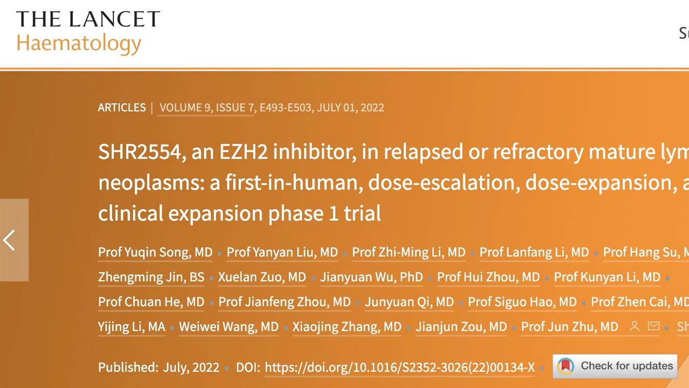 亚美国际官方医药创新药EZH2抑制剂SHR2554联合治疗成熟淋巴细胞肿瘤获批临床